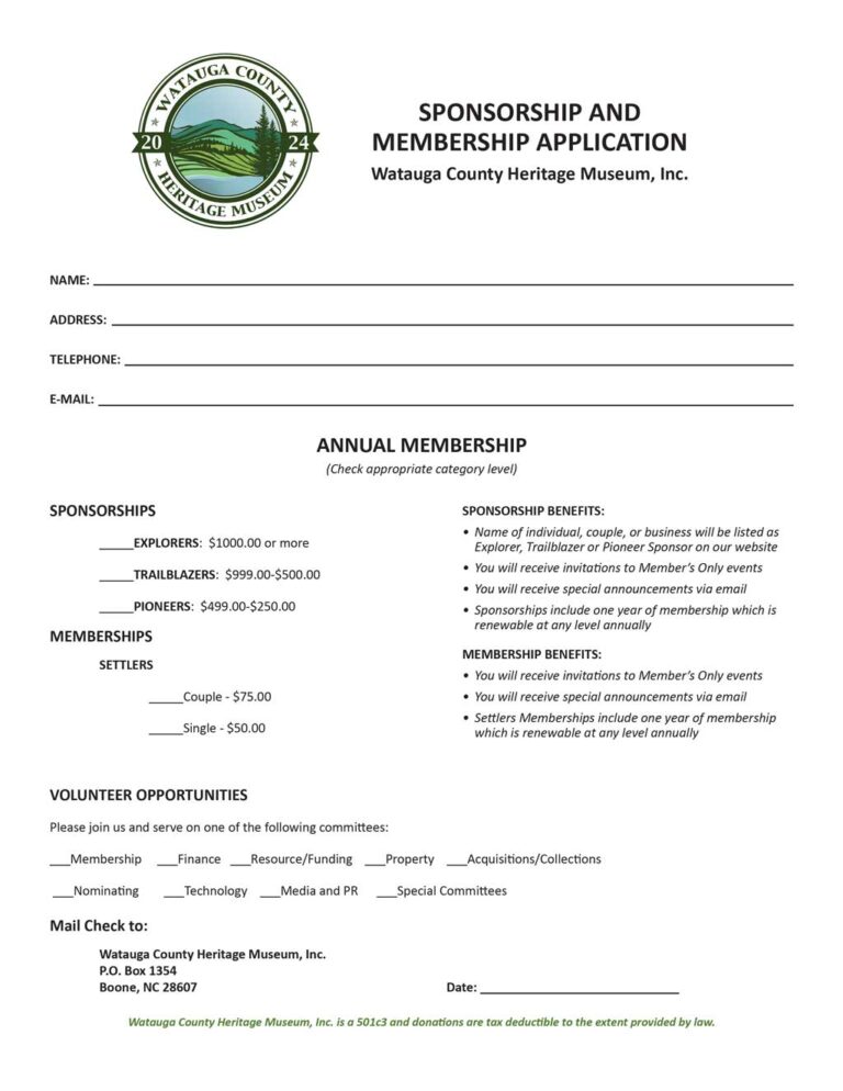 - Sponsorships include one year of membership which is renewable at any level annually